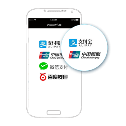 平台,为iOS/Android原生/H5 App提供支付解决方案:支持微信支付、支付宝支付、银联手机支付、百度钱包等。